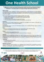 The Centre for Viral Zoonoses, University of Pretoria, is hosting a "One Health Symposium" on the 27th November 2018 to bring together One Health researchers across human, animal and environmental health disciplines from the University of Pretoria, and our collaborators from the National Department of Health, Department of Agriculture, the National Institute for Communicable Diseases (NICD) and the ARC-Onderstepoort Veterinary Research (ARC-OVR), as well as other universities and organizations, to participate in a symposium that will showcase our One Health collaboration in research and educat