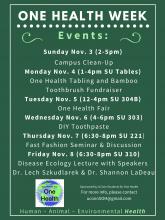SAVMA & the Virginia Tech One Health Working Group are hosting the second annual International One Health Day Competition at Virginia Tech in honor of International One Health Day. Participants from all graduate programs (DVM, DO, MPH, PhD, and all master's programs) at Virginia Tech can complete in teams of four students. Each team needs to have at least one veterinary (DVM) or medical (DO/MD) student, one MPH student, and one graduate (MS or PhD, any department). Teams will develop plans to solve several different outbreak scenarios.